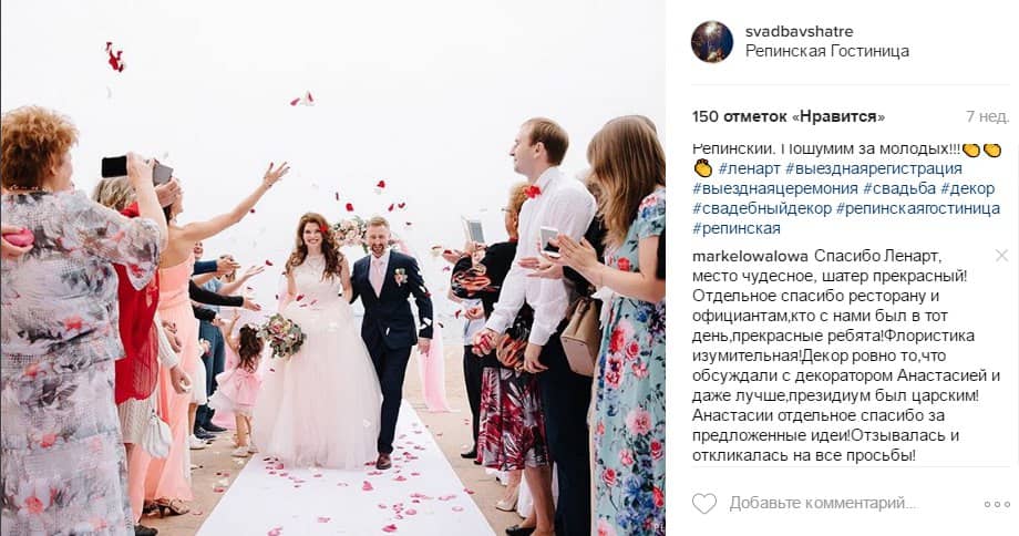 🎁 номер для молодоженов в гостинице Репинская; скидка 15% на проживание гостей; бесплатная организация мероприятия